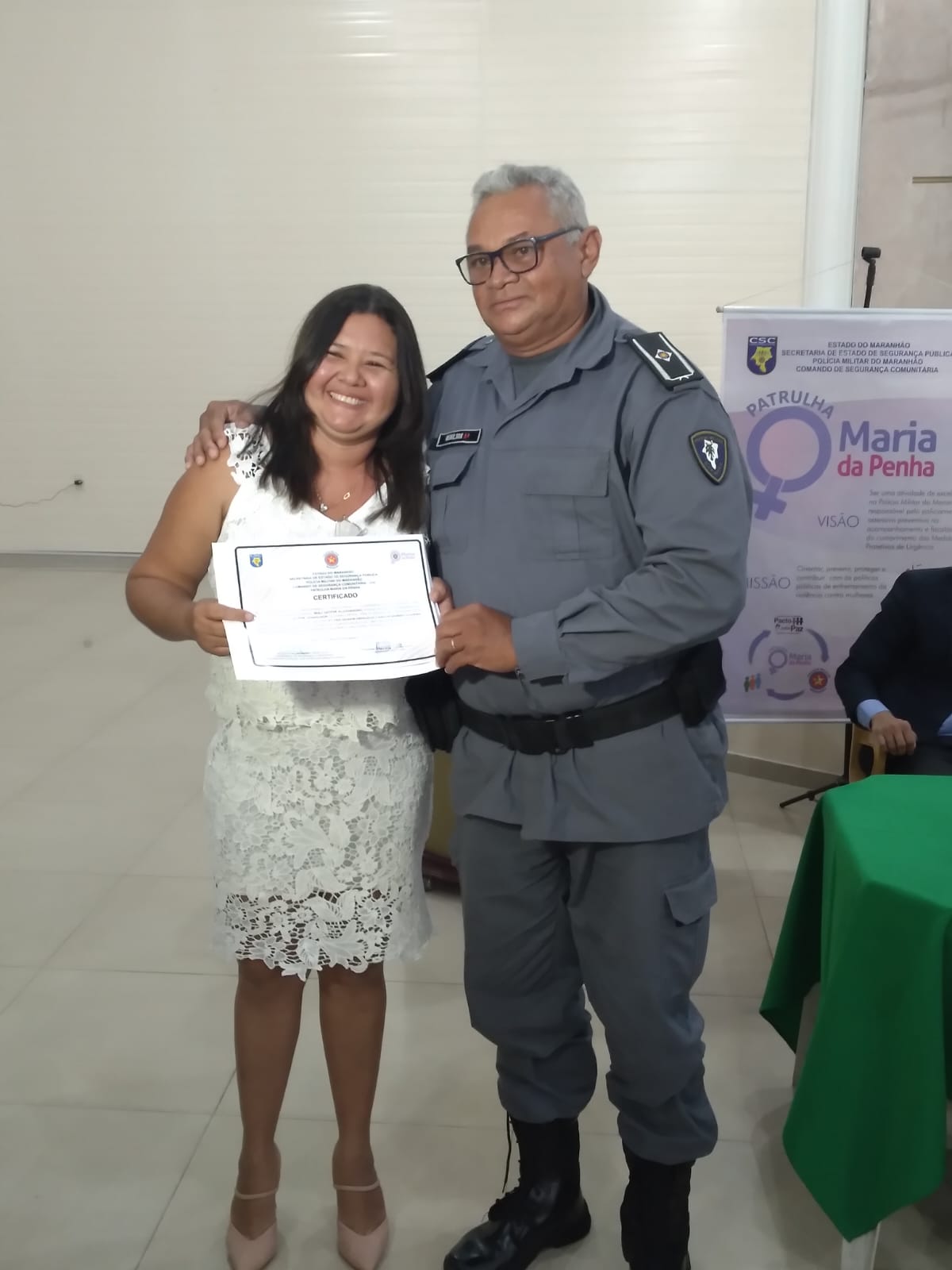 O Comandante do 17° BPM presidiu a solenidade e agradeceu a todos os entes envolvidos durante o Curso e do Programa, enalteceu a importância das mulheres na sociedade e da Patrulha Maria da Penha para a Cidade de Codó e Timbiras.
