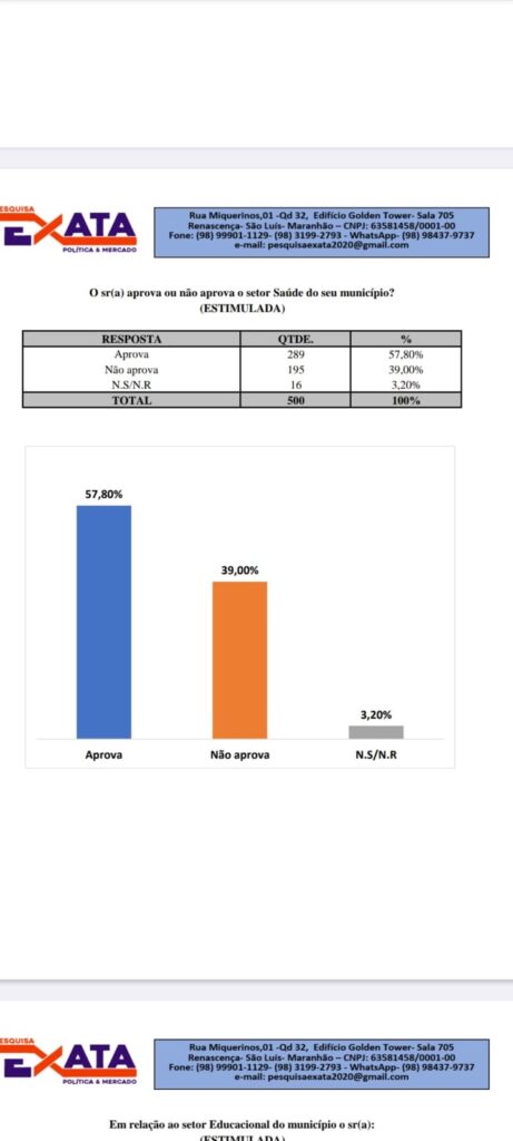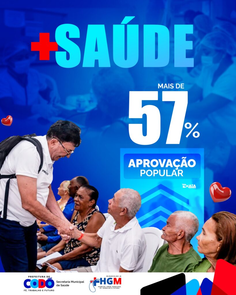 A cidade de Codó alcançou 57,80% de aprovação popular, de acordo com a mais recente pesquisa realizada pelo Instituto Exata. O levantamento aponta que a administração do prefeito Chiquinho FC tem ganhado a confiança da população, especialmente pelos avanços significativos na área da saúde pública, após apenas oito meses de mandato.