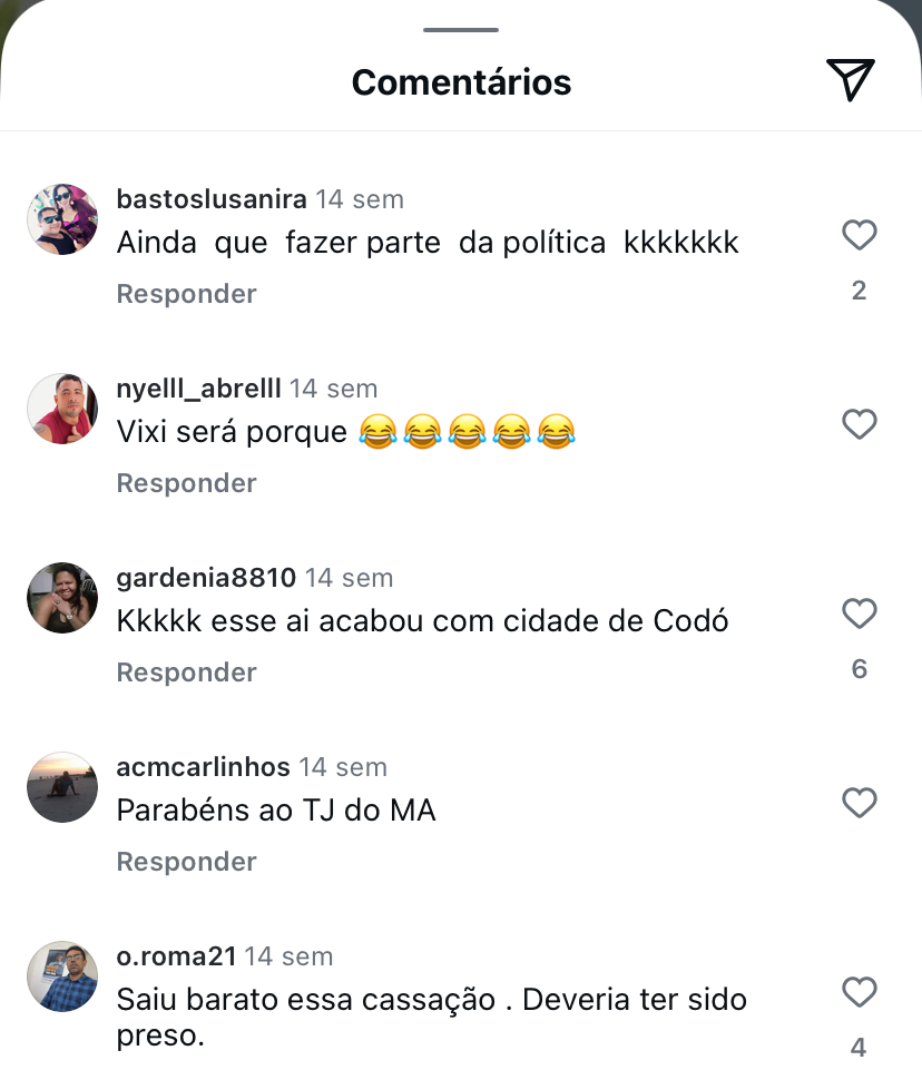 Ultimamente o Zé da égua como é conhecido vem gravando vídeos propagando Fake News, inverdades e tentando difamar imagens de pessoas de bem do município, despido de moral, responsabilidade e honestidade essa figura deplorável que pratica uma politicagem baixa em Codó, ainda não se acostumou de ser rebolado pela janela dos fundos da prefeitura através de duas cassações pela câmara de vereadores.
