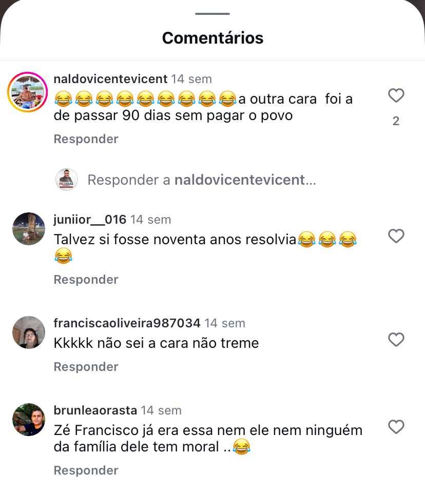 De fato a bolha a qual vive o ex prefeito já está furada mesmo antes das eleições pois os codoenses não votaria no ex prefeito caso ele pudesse ser candidato quanto mais no seu filho. Zé Francisco caminha a passos largos para um fiasco eleitoral em 2026, pois mais uma vez ele terá a resposta do povo de Codó nas urnas pela sua péssima administração, onde deixou a desejar em todas as áreas, principalmente na saúde, afirmando que ia resolver em 90 dias, deixando a pasta nas piores condições que um prefeito já havia deixado na história de Codó.