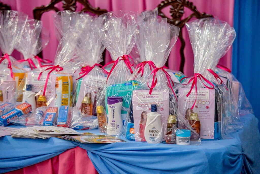 Ao final das atividades, as participantes receberam um kit pós-parto preparado pela equipe da Saúde da Mulher, além de participarem de um momento de confraternização.